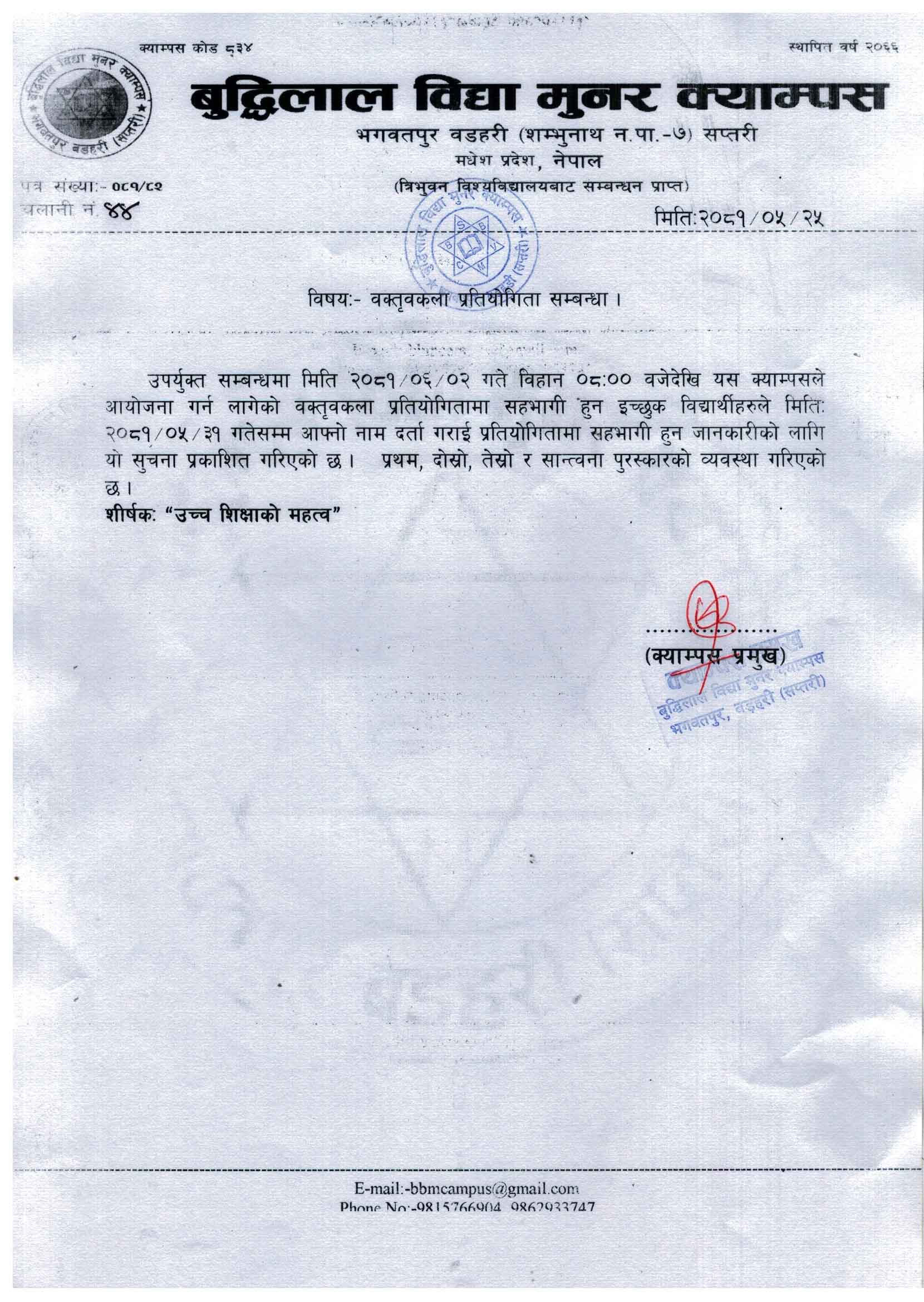 वक्तृवकला प्रतियाेगिता सम्बन्धमा
